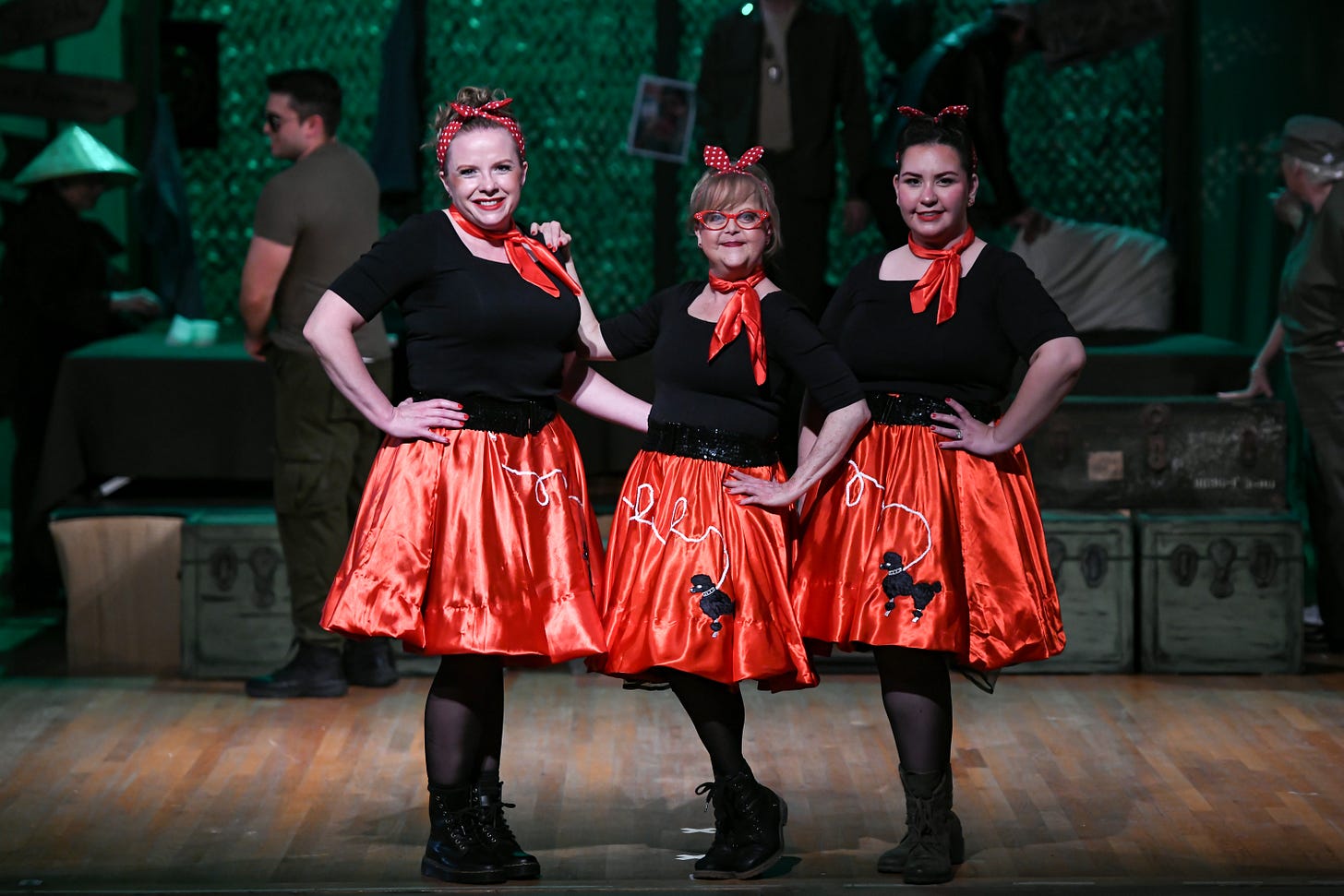 Joh and I just finished our run of performances for Ardmore Little Theatre's production of M*A*S*H, the last show in our local community theater's 70th season with the largest audience attendance of any non-musical in more than a decade. Joh was our illustrious director, tasked with wrangling a herd of chaotic thespians of all ages and levels of acting experience. I had the pleasure of performing as one of The Bonwit Sisters, and if you don't know who they are, you're missing out. Dubbed "The Nitwits" by a disgruntled group of Army nurses, Mitzi, Fritzi, and Agnes (me), are the ditziest special forces performers who bring a bright spot into the dreary Army camp. My absence of dancing skills won rave reviews!